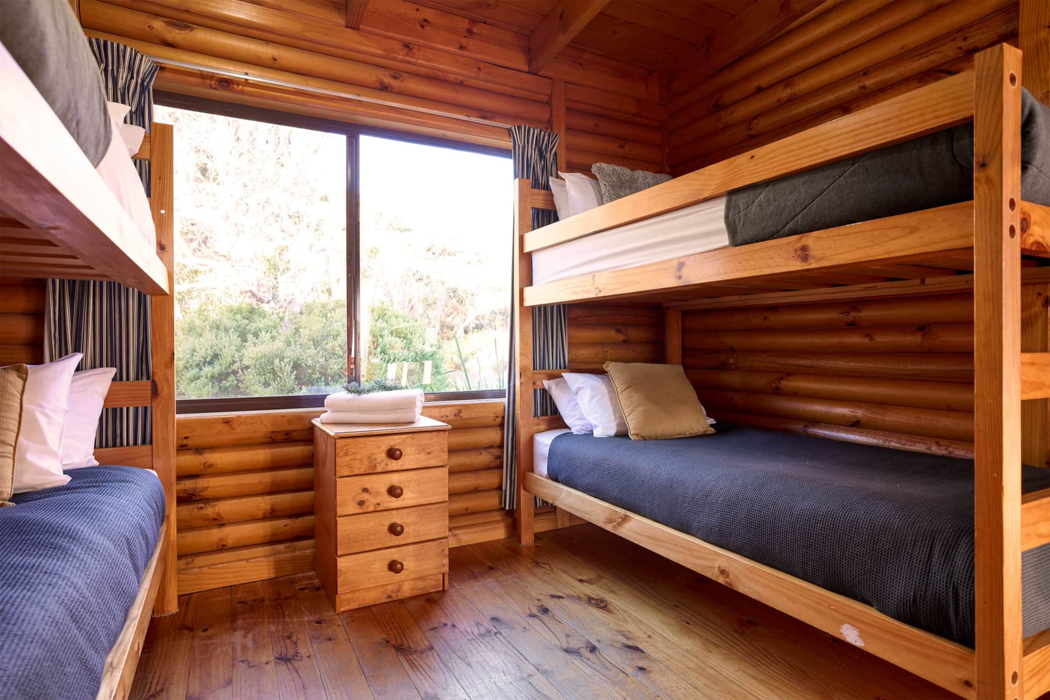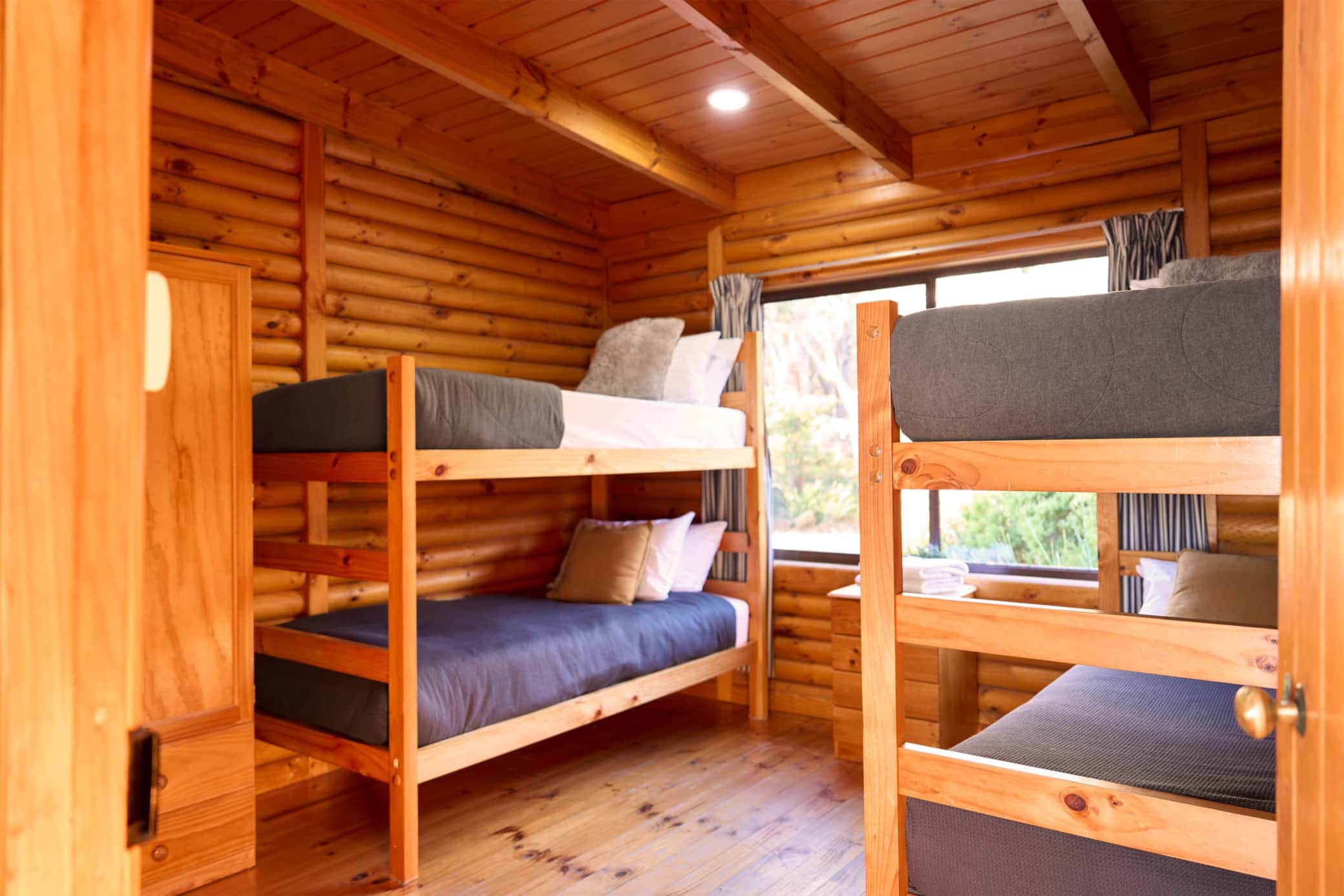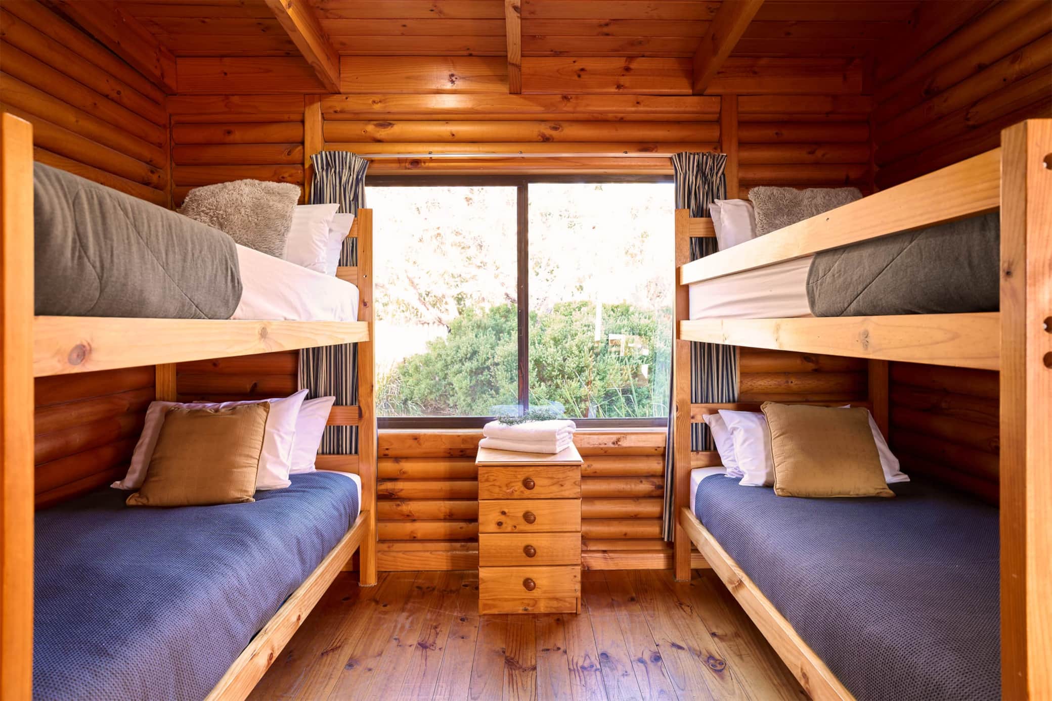 Delightfully cosy with modern quality furniture and luxurious linen, the cabin comfortably sleeps six, whilst also offering additional guests the option to camp under the stars on the expansive grassed recreation area.